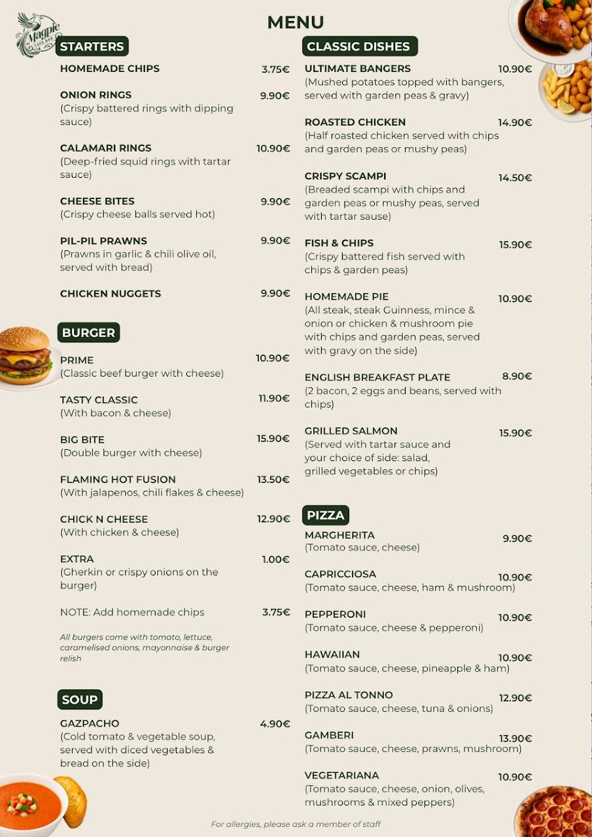 Welcome to Magpie Cafe Bar, nestled in the picturesque Fuengirola Port. This delightful cafe offers a menu packed with comforting classics, ensuring every visit is a treat. Indulge in their signature burgers, like the Prime Beef Burger, or elevate your meal with the Big Bite, featuring double helpings of juicy beef and cheese for only €15.90.
